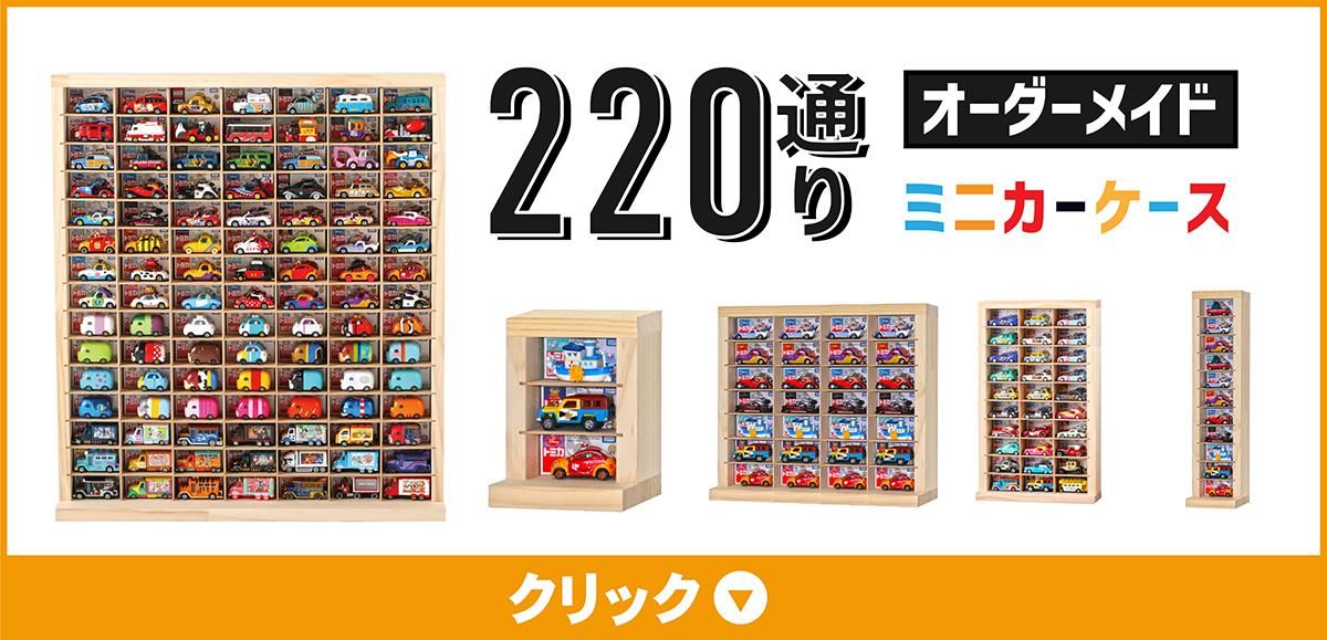 【能登ヒバ使用】ミニカーケース15×7マス(最大210台収納可能 扉なし 取り出し加工有り)
